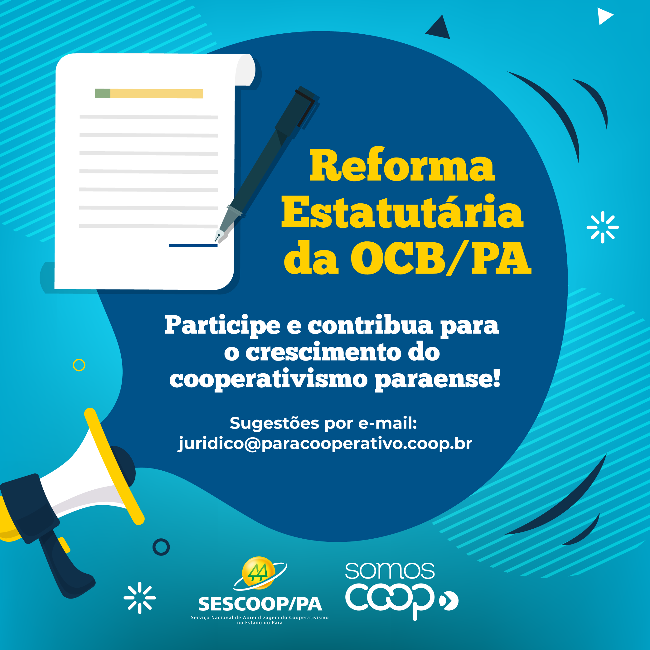 Ao longo de 46 anos, a Organização das Cooperativas Brasileiras tem promovido o desenvolvimento socioeconômico do Pará através do cooperativismo. Os números demonstram a evolução do setor, mas os desafios ainda são muitos. Por isso, a entidade está reformulando seu estatuto social para melhor atender as cooperativas. As singulares poderão enviar sugestões de inclusão e melhorias no Estatuto até o dia 31 de dezembro pelo e-mail:
