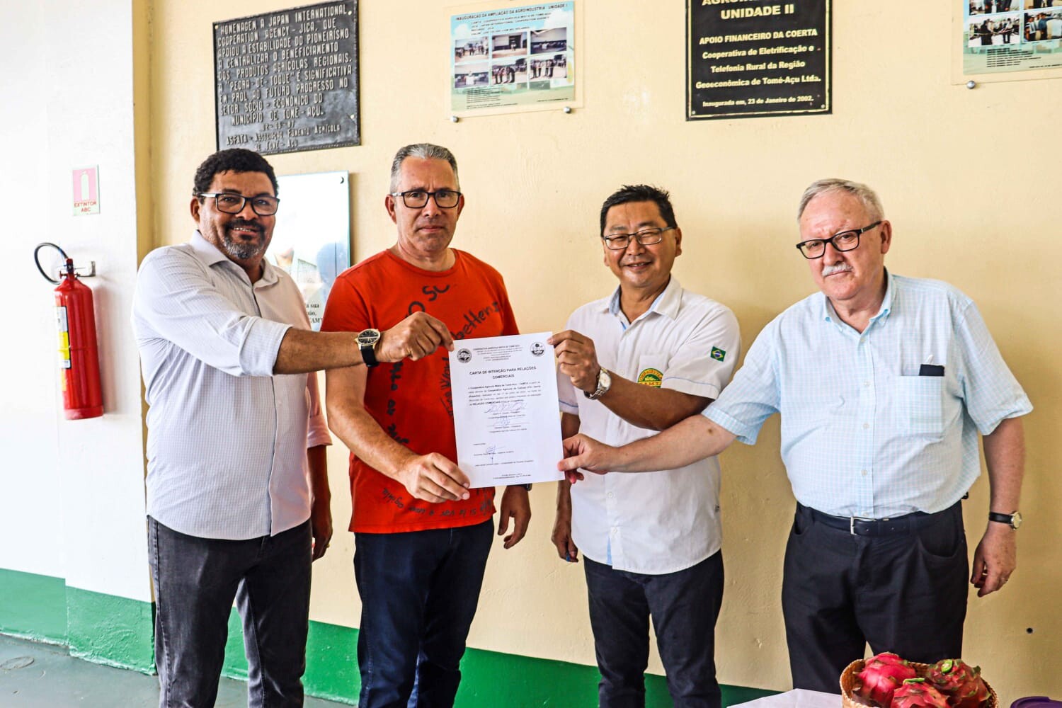 Estiveram presentes o representante Chefe da JICA Brasil, Masayuki Eguchi, o cônsul do Japão em Belém, Satoshi Morita, o Prefeito Municipal de Tomé-Açu, Carlos Vieira, o Presidente da Câmara Municipal de Tomé-Açu, João Francisco, o Presidente da OCB Pará, Ernandes Raiol, o Presidente CEO da Fruta Fruta, Makoto Nagasawa e o Secretário da SEDEME, José Fernando.