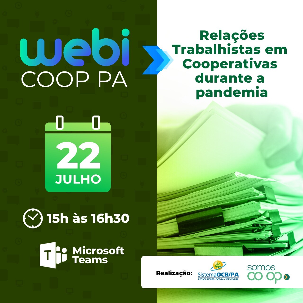 O Webi COOP PA de amanhã (22/07), será com Walber Palheta de Mattos, Advogado Trabalhista, Mestrando em Direito, Professor Universitário e Procurador Chefe da Câmara Municipal de Belém.