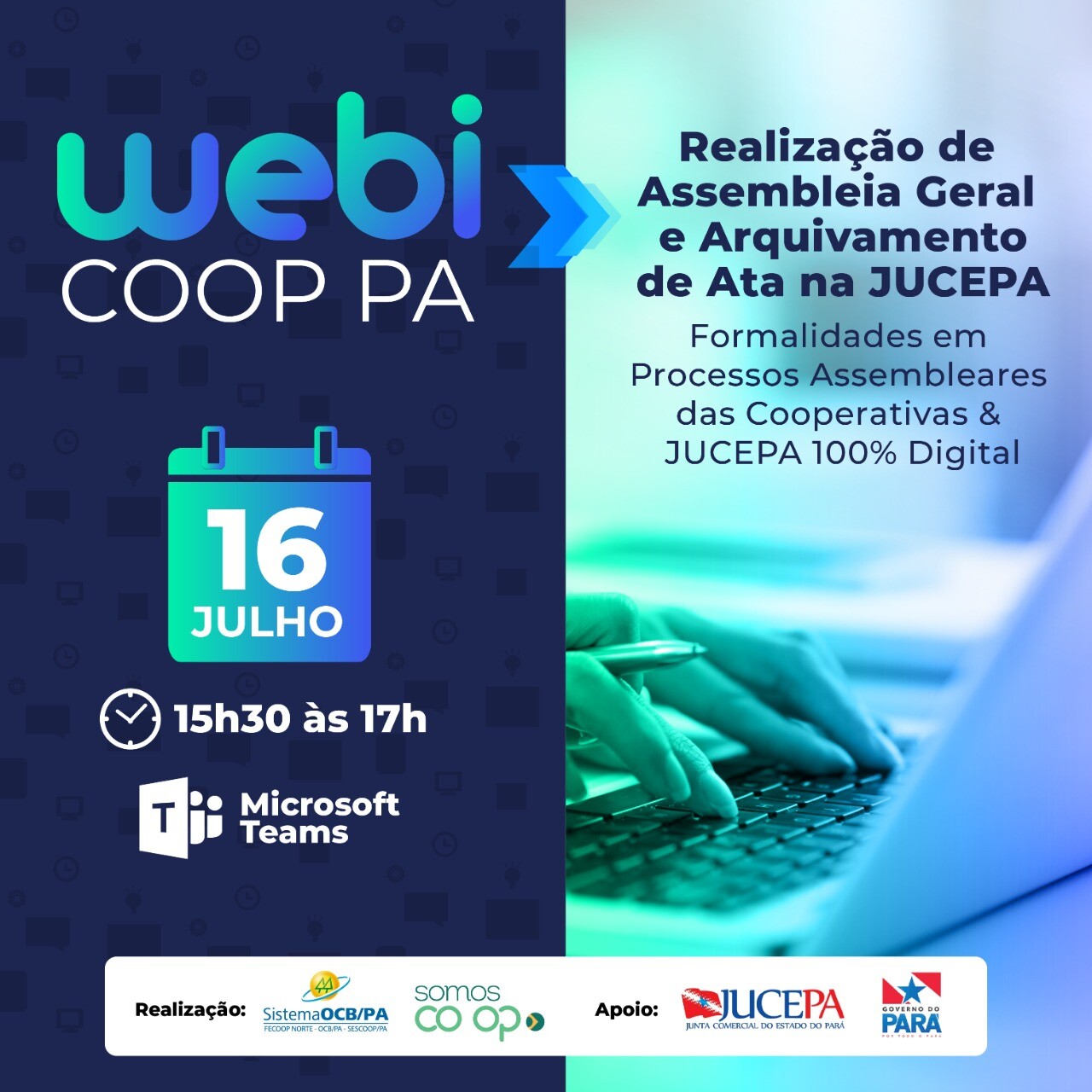 Com uma nova estratégia na área de formação profissional, o SESCOOP/PA desenvolveu o projeto WebiCoop.PA, uma série de capacitações online para as cooperativas paraenses. A primeira já ocorre na próxima quinta (16), sobre Assembleia Geral e Arquivamento de Ata na JUCEPA. Será a partir das 15h30, por meio do aplicativo TEAMS. As inscrições podem ser feitas no link: https://jucepaintegrador.com.br/erm/login