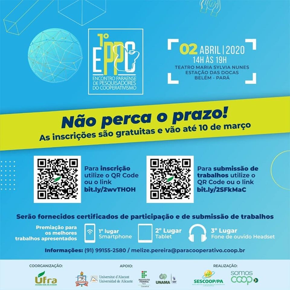 Os interessados em participar ou em submeter trabalhos no 1º Encontro Paraense de Pesquisadores do Cooperativismo (EPPC) já podem realizar suas inscrições por meio de plataforma disponibilizada pela UFRA. A programação ocorre no dia 02 de abril, durante a Feira de Negócios do Cooperativismo (FENCOOP), reunindo os principais pesquisadores do segmento. O prazo para submissão de trabalhos é até o dia 29 de fevereiro com premiações para os três primeiros colocados.